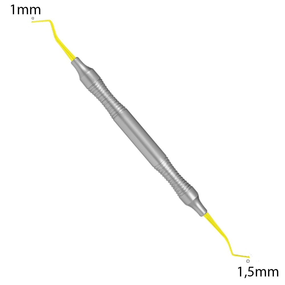 Applicateur de composite 1mm/ 1,5mm TiN Coated . Ce revêtement de nitrure de titane donne une excellente longévité à cet instrument en le rendant très dur et le protégeant de la corrosion.